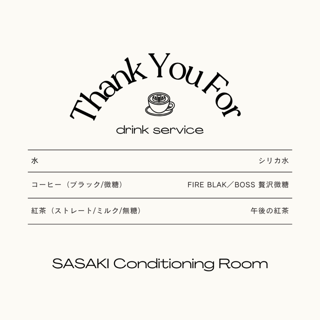 当院では、施術後にゆったりとお過ごしいただけるよう、ドリンクサービスを導入いたしました。